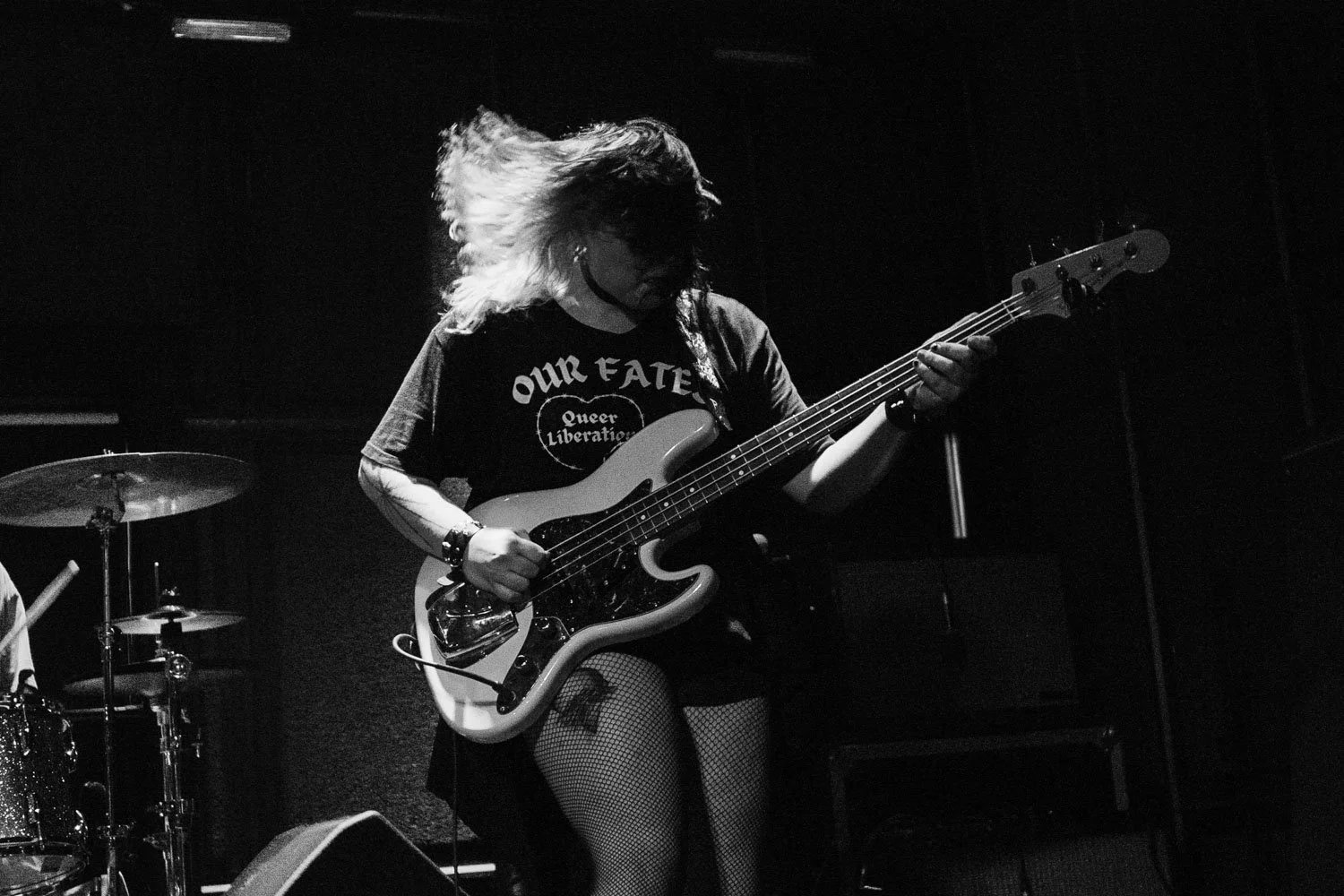 I have seen both Megan From Work a handful of times and Burn Kit twice before. Megan, the frontperson, for MFW is always a pleasure to watch on stage. I think they genuinely put the crowd in a good mood. You feel safe and suddenly optimistic about whatever is going on in your life when you watch MFW. Megan has an especially fun, charming, and self deprecating sense of humor that is impossible not to love or be entertained by. Megan From Work also played their new, catchy, single “Girl Suit” which is one of those songs that never leaves your head, even if you’ve only heard it once. But you’ll never hear me complain.